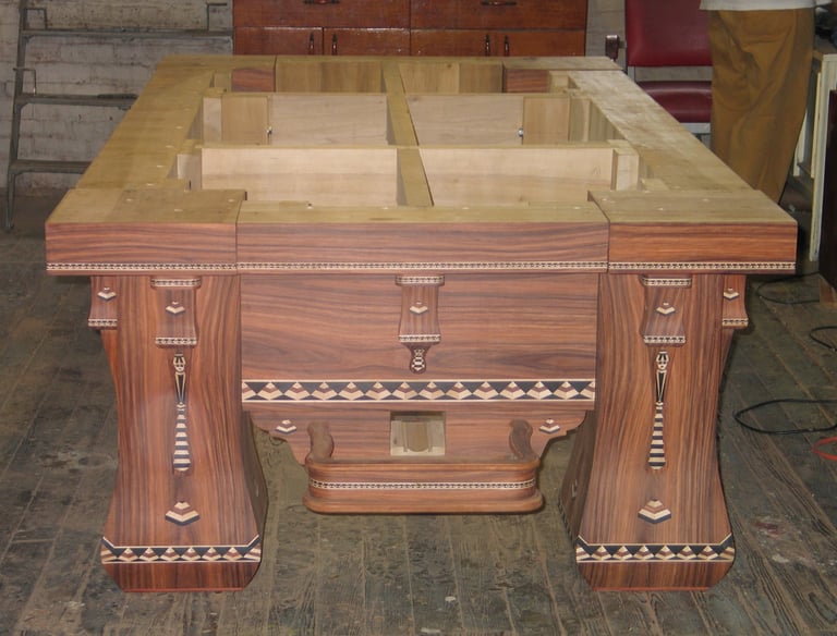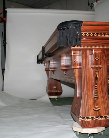 En Hatoum, creamos mesas de billar de alta gama, fusionando ebanistería tradicional con ingeniería de precisión, utilizando maderas nobles y ofreciendo personalización total.